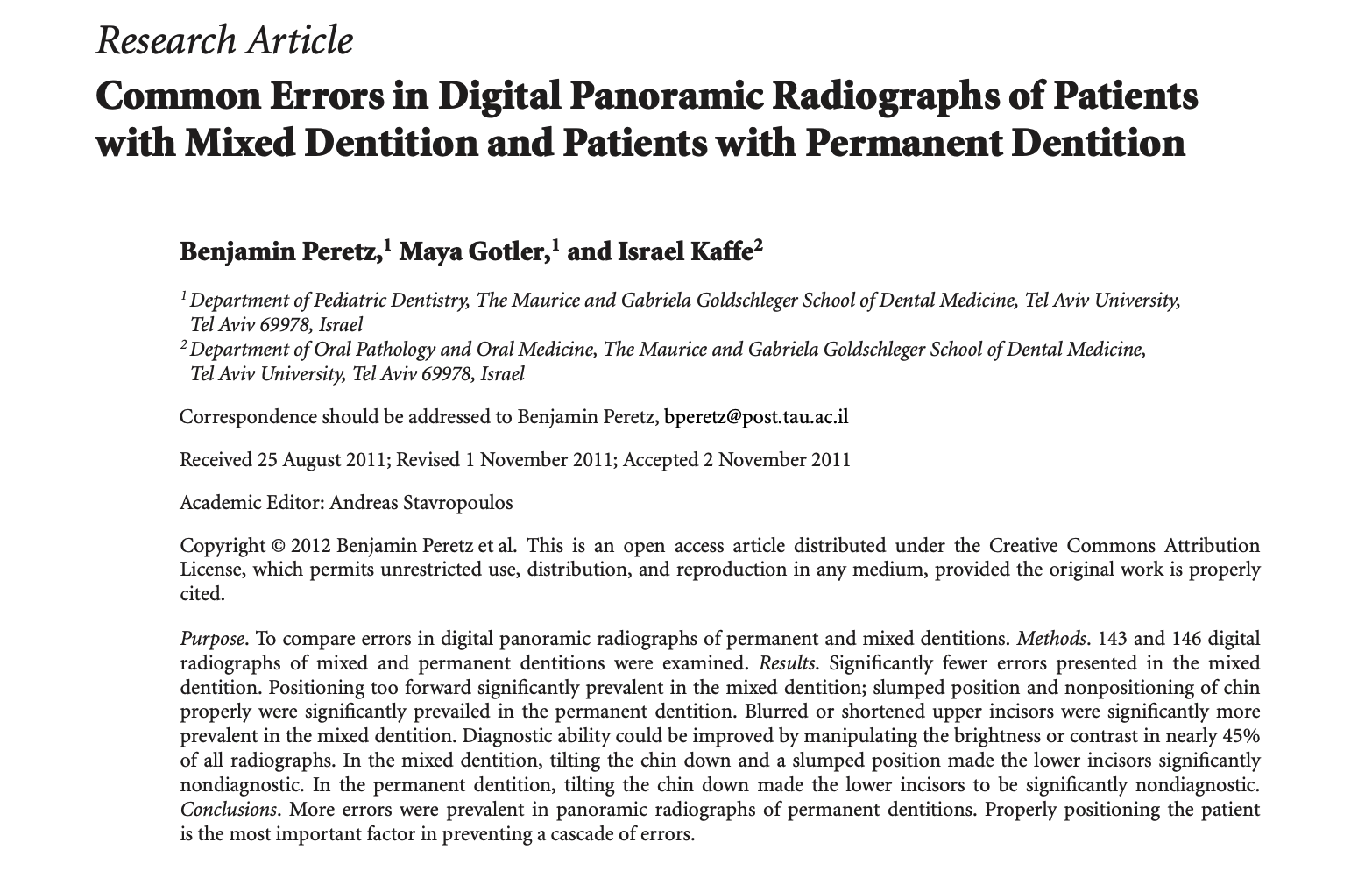Common Errors in Digital Panoramic Radiographs of Patients withMixed Dentition and Patients with Permanent Dentition קרא עוד »