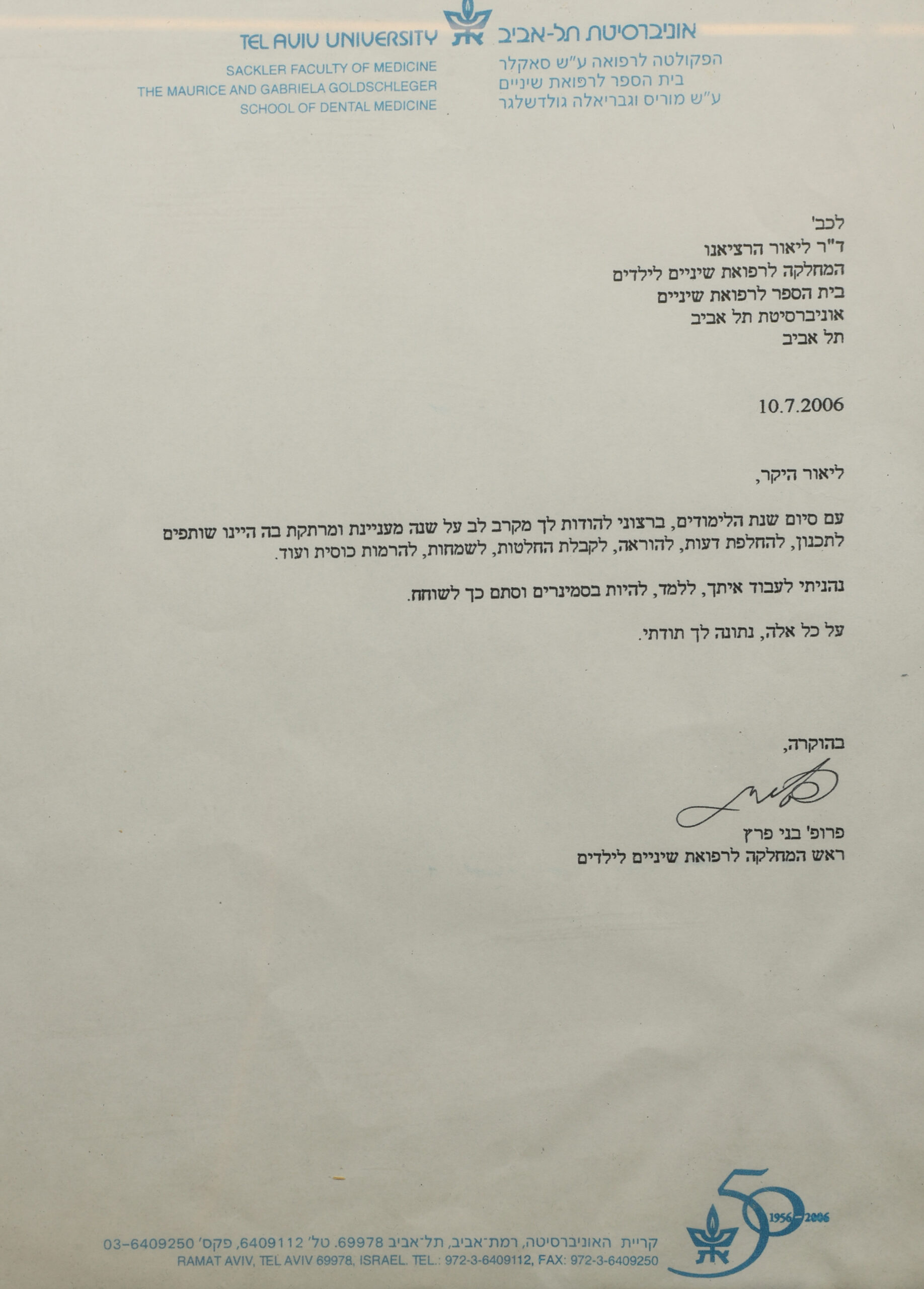 מרבית הצוות עוסק במקביל בהוראה בבית הספר לרפואת שיניים באוניברסיטת תל אביב.